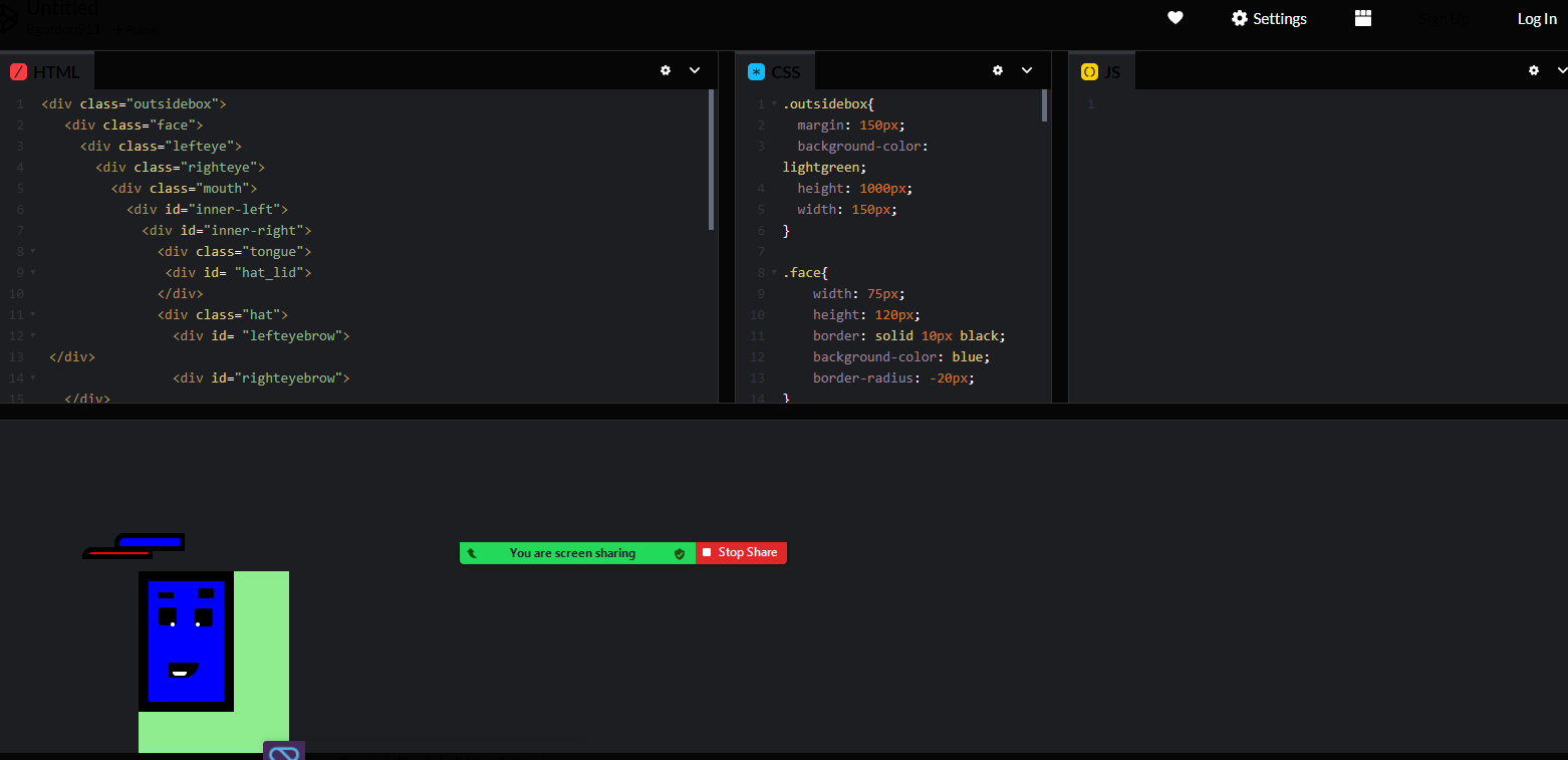 This project reflects on HTML and CSS.The objective that was announced to the class was to create a monster using CSS/HTML.