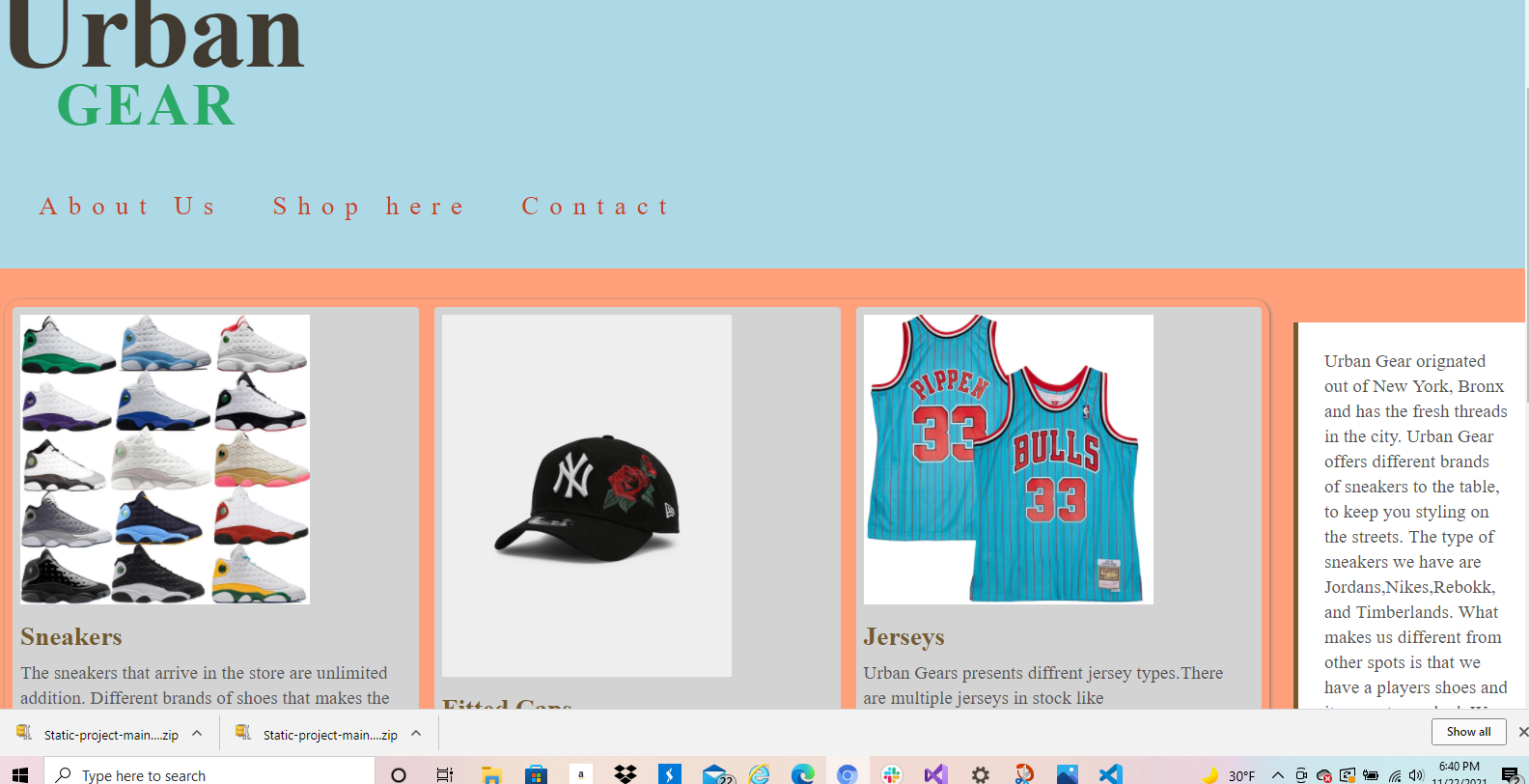 This Project constist of utilizing CSS and HTML. The objective was to build a static store front that represents a business that you want to create.